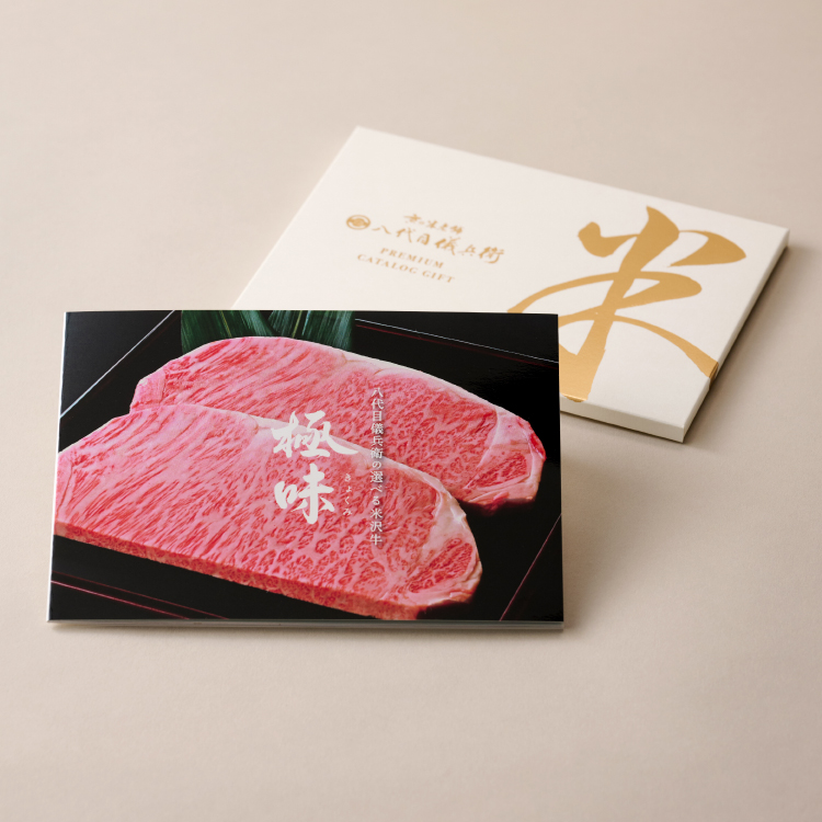 こだわりを極めた「銘店米」と、A5等級の極上牛が味わえる逸品。14商品の中から、お好きなものを3商品選べる米沢牛のカタログギフトに加え、八代目儀兵衛最高峰の「翁霞」が受け取れる儀兵衛のお米券もセットにしました。極上のお米を米沢牛とともに味わう、最大級の感謝を込めた至福の贈りもの。